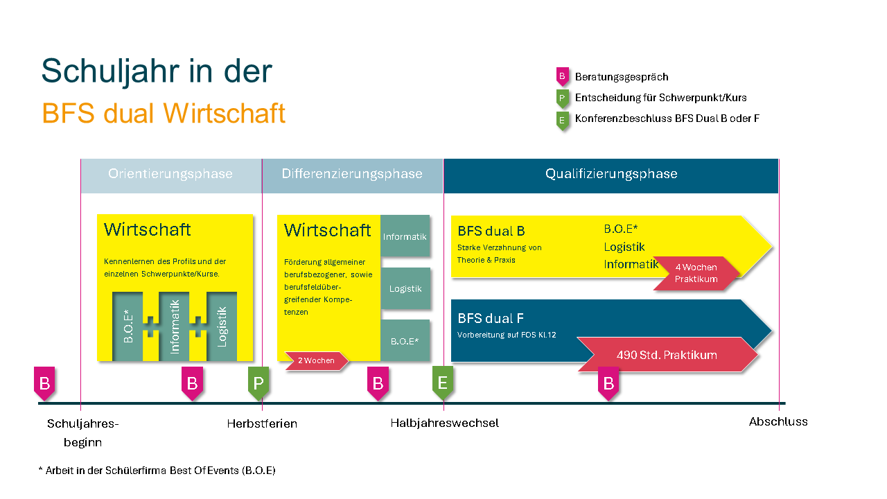 Möchtest du Theorie und Praxis verbinden und im kaufmännischen Bereich oder als Fachinformatiker durchstarten? In der BFS dual Wirtschaft lernst du flexibel und praxisnah, unterstützt von unseren Lehrkräften. Wir fördern Eigenverantwortung, Freiheit und Selbstständigkeit.